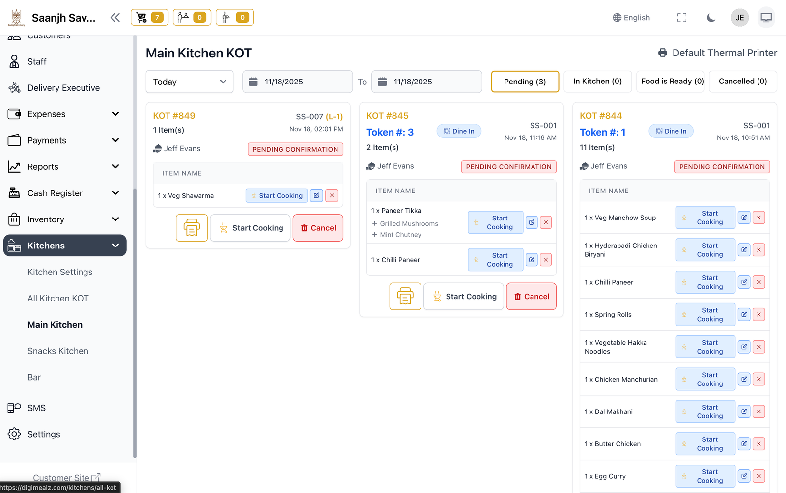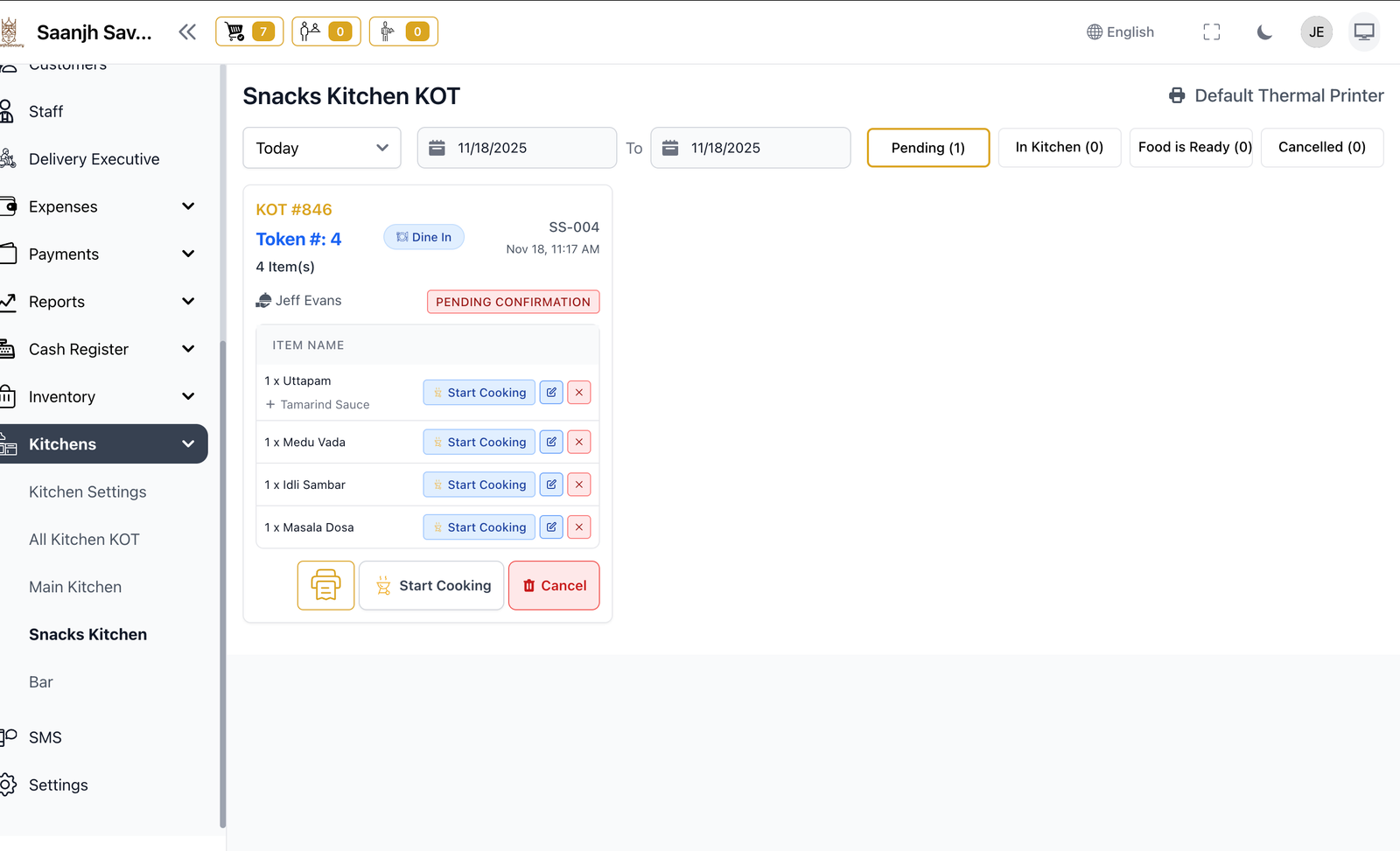 Isko try karoNo confusion, direct orders. Kitchen Display System (KDS) automatically routes orders to the right station. Start cooking, mark ready — done.