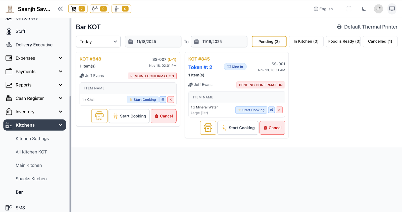 Isko try karoNo confusion, direct orders. Kitchen Display System (KDS) automatically routes orders to the right station. Start cooking, mark ready — done.