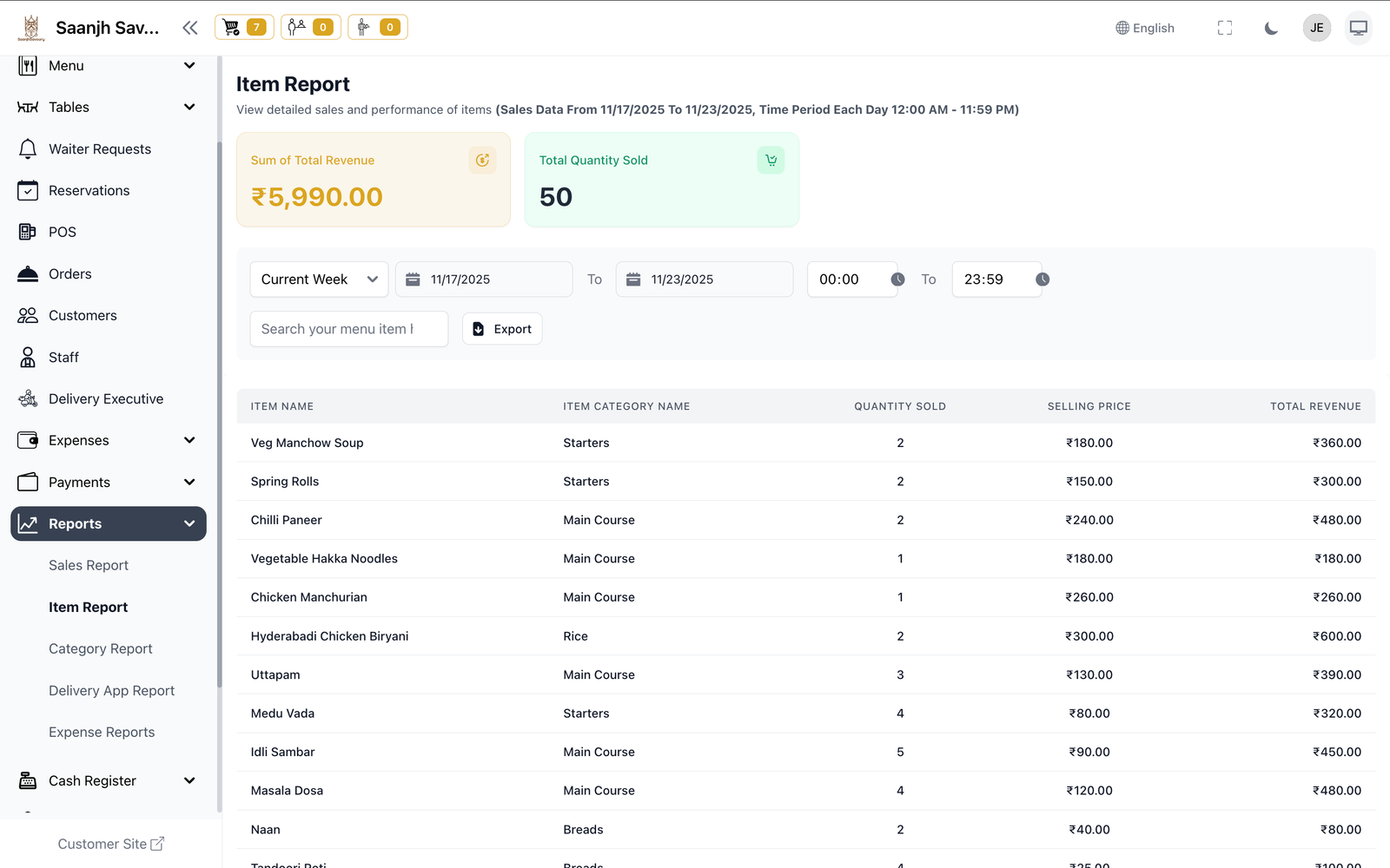 Yahan se poora restaurant dekho. Aaj kitna bada? Kaunsa item bestseller hai? Kitchen me kya chal raha hai? Sab real-time.